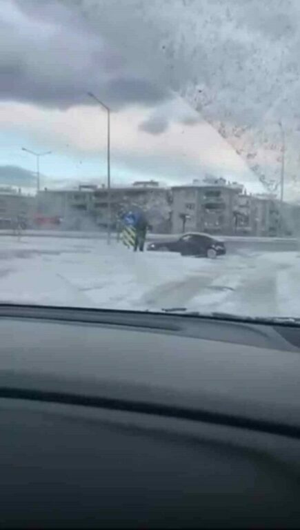 Kentte etkili olan kar yağışıyla birlikte kayganlaşan yollarda tehlikeli anlar yaşandı. Kar yağışını fırsat bilen bir sürücü, otomobiliyle kavşakta drift atarak trafik güvenliğini hiçe saydı. O anlar çevredeki bir vatandaş tarafından cep telefonu kamerasıyla kaydedildi.