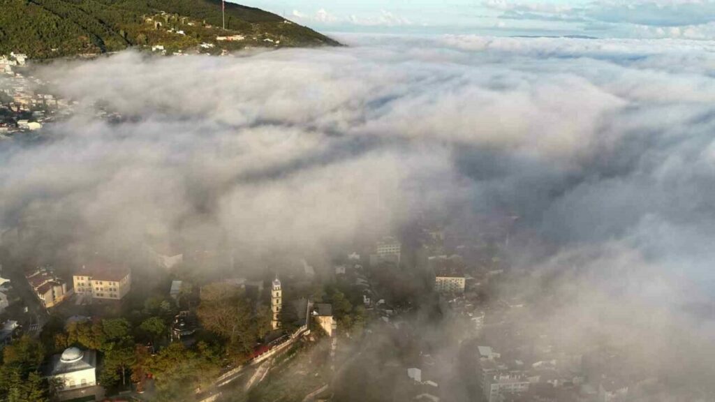 Bursa semaları havadan görüntülendi. Şehrin üzerindeki bulutlar adeta kenti örttü. Bursa’nın bulutların arasındaki manzarası kartpostallık görüntüler ortaya çıkarttı.
