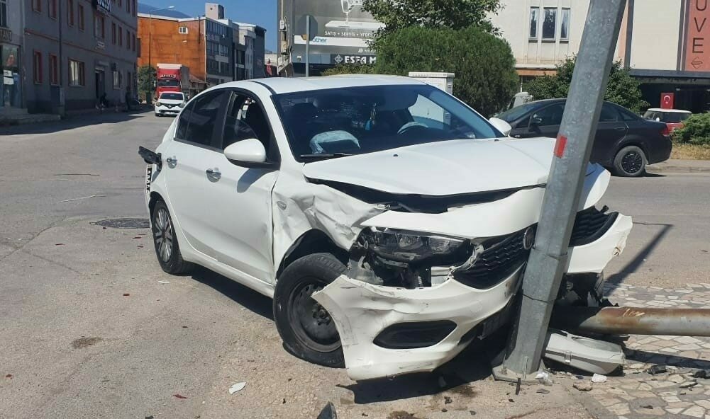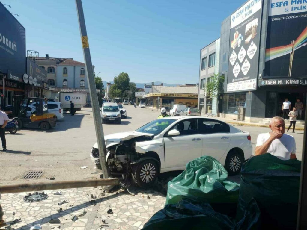 Kaza saat 10.30 sıralarında Mahmudiye Mahallesi Kalender Caddesi ile 7. Mobilya sokağın kesiştiği kontrolsüz kavşakta meydana geldi. Kalender caddesi üzerinde seyir halinde olan Abdullah K.(43) yönetimindeki 16 ALU 599 plakalı hafif ticari araç, 7. sokak üzerinden gelen Günay Ö.(37) yönetimindeki 16 BBL 610 plakalı otomobil ile çarpıştı. Çarpışmanın etkisiyle savrulan otomobil aydınlatma direğine çarptı. Kaza sonucu otomobilin sürücüsü yaralandı. Yaralı kaza yerine sevk edilen Ambulansla İnegöl Devlet Hastanesine kaldırıldı. Kaza anı bir işyerinin güvenlik kamerasına saniye saniye yansıdı.