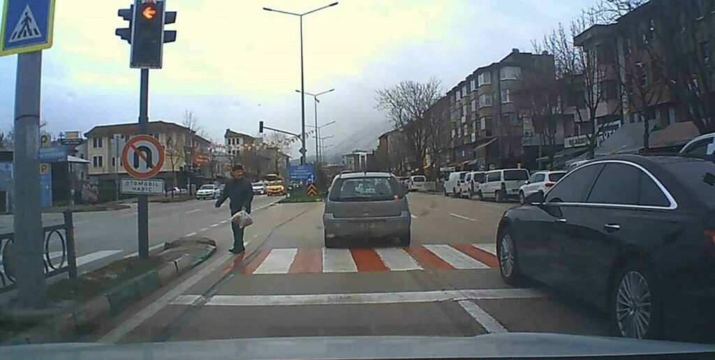 Bu sırada 16 BJP plakalı otomobil, sola dönüş yapacakmış gibi dönüş şeridine girdi. Ancak sola dönüşten vazgeçen sürücü şerit değiştirip yoluna devam etmek istedi. Manevra sırasında geçitteki yayanın canını hiçe sayan sürücü tehlike yaşattı. Muhtemel bir kazanın son anda önlendiği olay, trafik kurallarının ihlal edilmesinin doğurabileceği ciddi sonuçları bir kez daha gözler önüne serdi. O anlar da bir otomobilin araç kamerasına yansıdı.