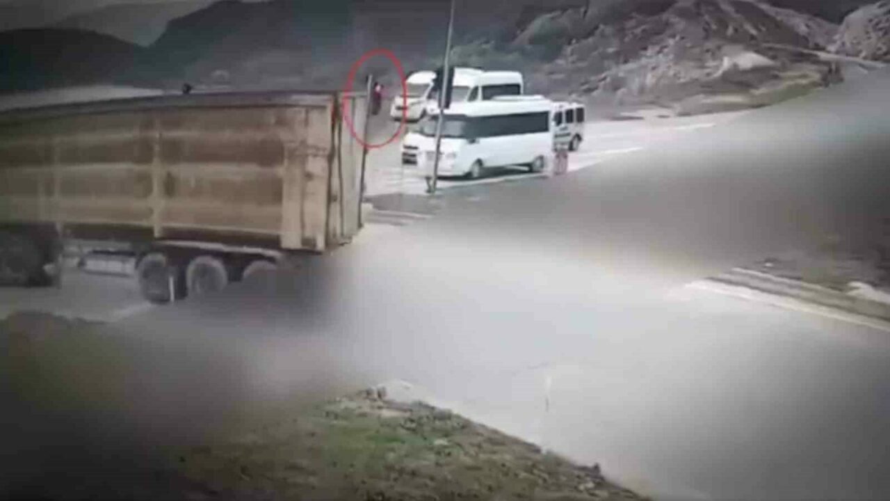 Kırmızı ışıkta geçen kamyon kameralara takıldı