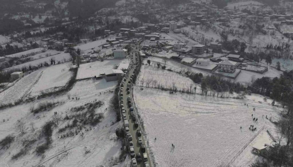 Bursa’da düzenlenen Kış Festivali’ne vatandaşlar yoğun katılım sağlarken, köy yollarının dar olması ve araç yoğunluğu nedeniyle trafik adeta felç oldu.