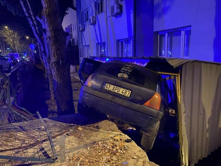 Bursa’da kontrolden çıkan araç apartmanın bahçesine savruldu