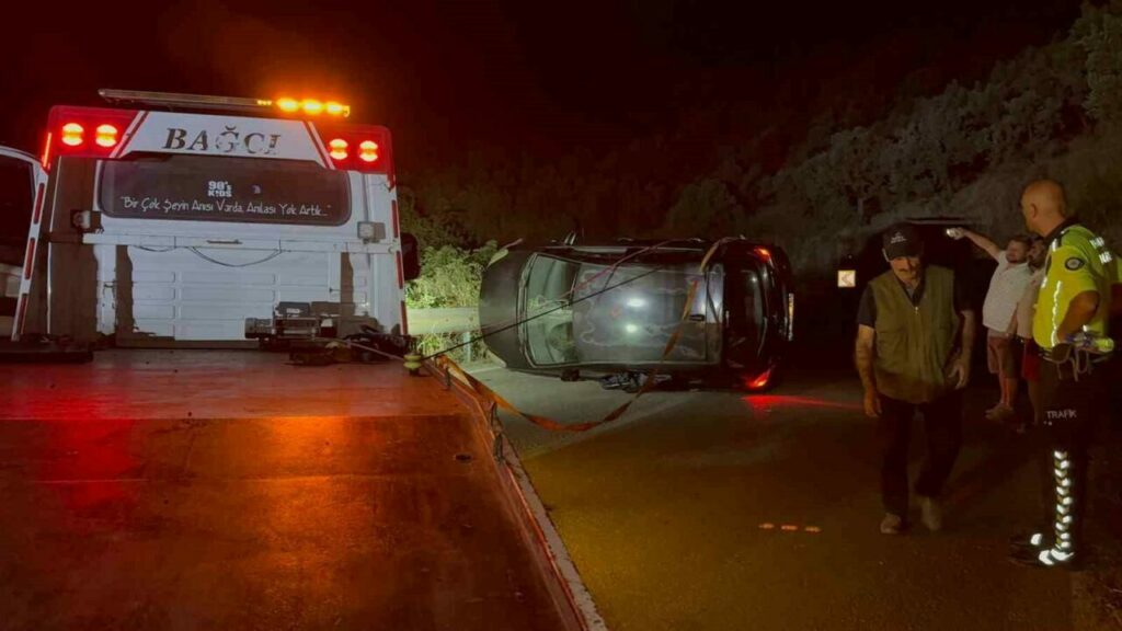 Bursa’nın Gemlik ilçesinde sürücüsünün kontrolünden çıkan otomobil takla attı. Yaşanan kazada şans eseri yaralanan olmadı.