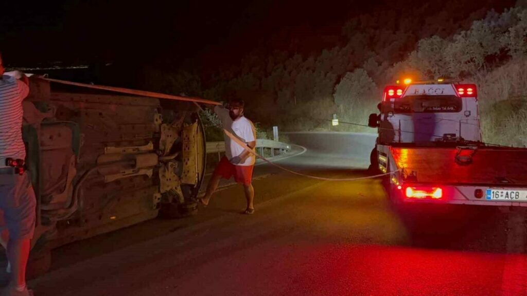 Bursa’da kontrolden çıkan araç takla attı