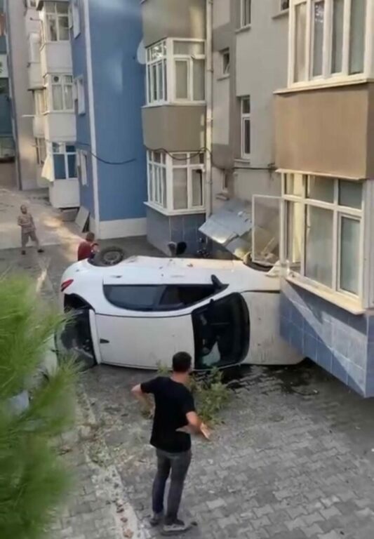 Kaza, merkez Yıldırım ilçesi Ertuğrulgazi mahallesi Eren Sokak’ta meydana geldi. Edinilen bilgiye göre, Furkan A., 16 KAT plakalı otomobiliyle seyir halindeyken bir anda gaza yüklenince sitenin duvarını aşıp takla attı. Metrelerce savrulan araç 5 katlı binanın birinci katına çarparak durabildi. Kazada korku dolu anlar yaşayan vatandaşlar 112 ekiplerine bilgi verdi. İhbar üzerine olay yerine sevk edilen sağlık ekipleri kazayı hafif sıyrıklarla atlatan sürücüye ambulansta müdahale ederken, polis kazayla ilgili tahkikat başlattı.