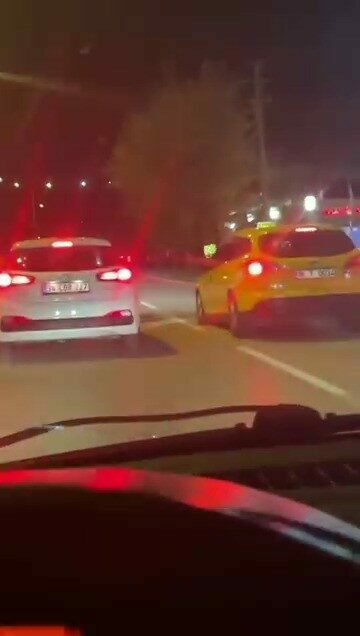 Öte yandan, yaşanan kovalamacada taksiden inen bir kişinin ise, korsan taşımacılık iddiası ile kovaladıkları şahsın aracına tekme atmaya çalışması kameraya anbean yansıdı.
