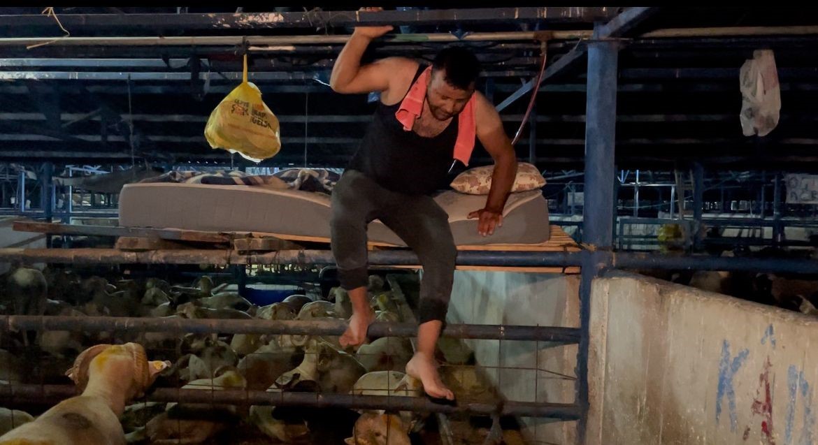 Bursa’da bayramın yaklaşmasıyla hayvan pazarlarında telaş başladı. İsabey’deki hayvan pazarına farklı illerden kurbanlık getiren satıcılar, geceleyin hayvanlarla koyun koyuna yatıyor. Satıcılar, büyük emekle yetiştirdikleri hayvanlarının yanından bir an olsun ayrılmıyor. Bir yıl boyunca büyüttükleri hayvanları satmak için pazara gelen besiciler, hayvanların başından ayrılamadan gece gündüz nöbet tutuyor. Hayvanları için yaptıkları bölmelerde kurbanlıklarla birlikte uyuyan celepler, ahırlarda yemek yiyor ve dinleniyor. Ahırlarda battaniyeye sarılıp yatan satıcılar, piknik tüplerinde yemek ve çaylarını yaparak karınlarını doyuruyor. Hayvan pazarlarında seyyar helalar ve hayvan sahiplerinin banyo yapabilmesi için kapalı duşlar bulunuyor. Bazı çobanlar hırsızlıktan korktukları için koyunlarla beraber yattıklarını söyledi.