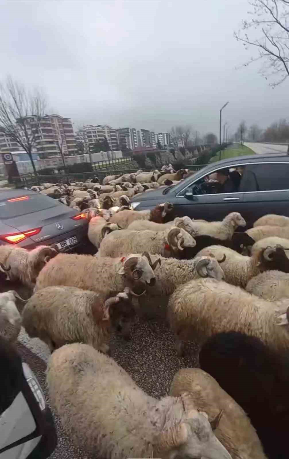 Edinilen bilgiye göre, yüzlerce koyunun bulunduğu sürü, çobanın kontrolünden çıkınca bir anda çevre yoluna çıktı. Sürücülerin dikkati sayesinde olması muhtemelen bir kaza yaşanmazken trafikte uzun kuyruklar oluştu. Vatandaşlar yaşanan bu duruma isyan ederken bir süre boyunca yol üzerinde kalan koyunların gitmesiyle birlikte trafik yeniden normal akışına döndü.