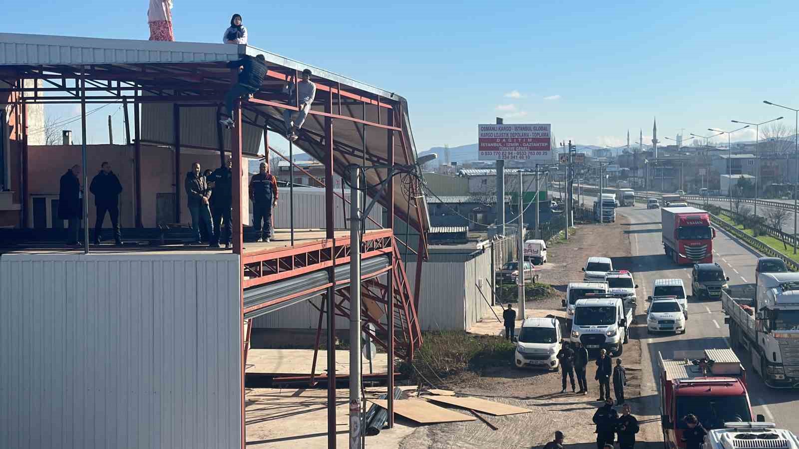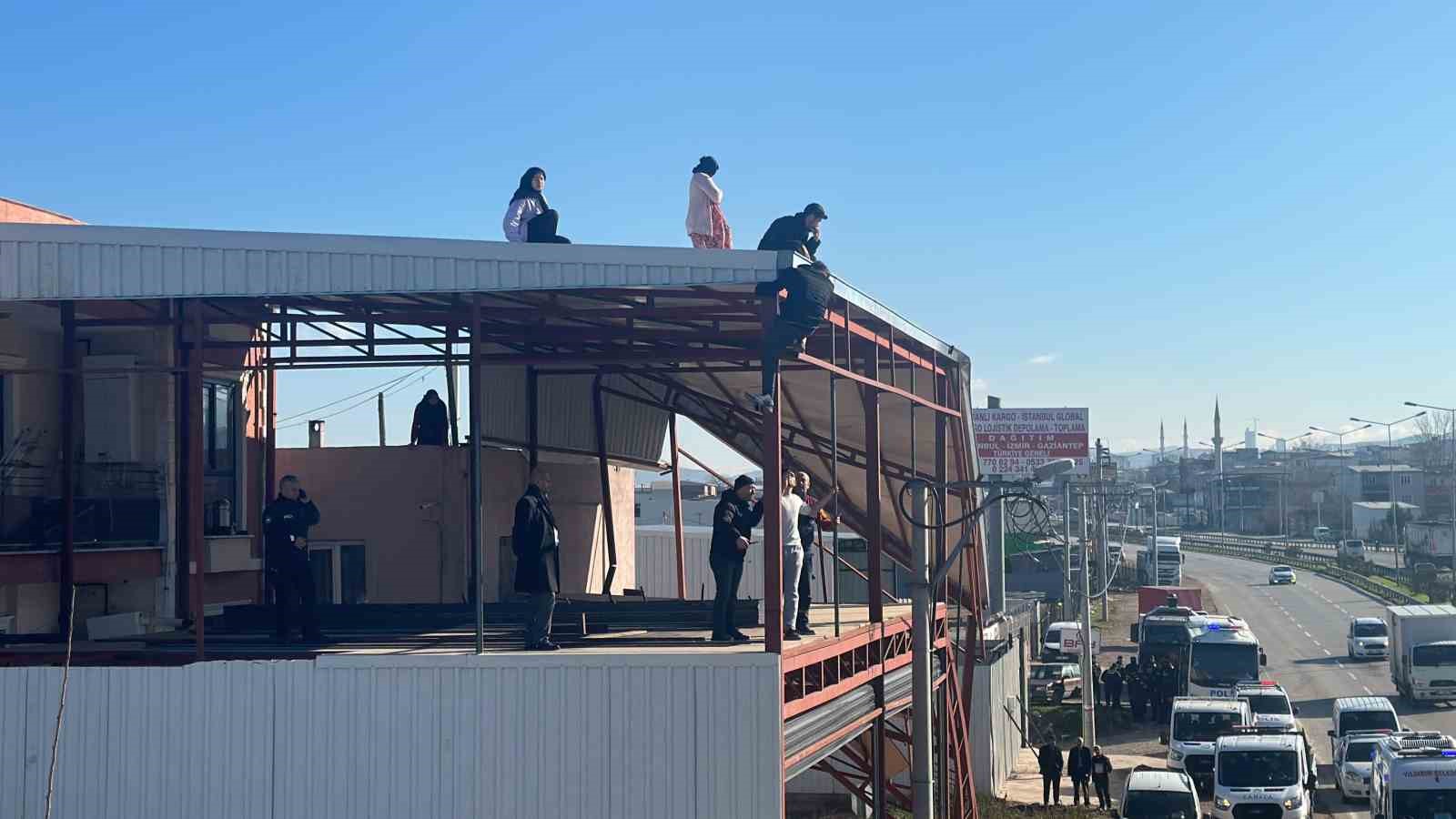 İş makinesinin yıkım için hareket ettiği sırada kucağında bebekle çatıya bir kadının çıktığı farkedildi. Ardından bu kadına aynı aileden oldukları tahmin edilen 4 kişi daha destek vermek için çatıya çıkıp demirlere tutundu.