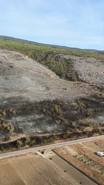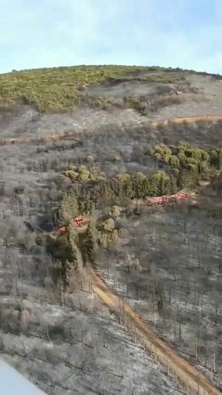 Bursa’nın Karacabey ilçesinde 16 saatlik hummalı çalışmanın sonucunda söndürülen ormanlık alandaki yangından geriye kalan küle dönmüş alan görüntülendi. Bursa’nın Karacabey ilçesi Ekmekçi köyü yakınlarında dün akşam üstü 18.30 sıralarında çıkan yangın, şiddetli rüzgarın etkisiyle kısa sürede büyüdü. Helikopterlerin havadan, ekiplerin ise karadan mücadele ettiği alevler, sabahın ilk ışıklarıyla kontrol altına alındı. Yaklaşık 16 saatin sonunda […]