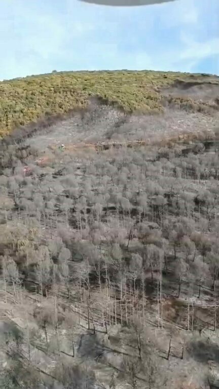 Bursa’da küle dönen ormanlık alan havadan görüntülendi