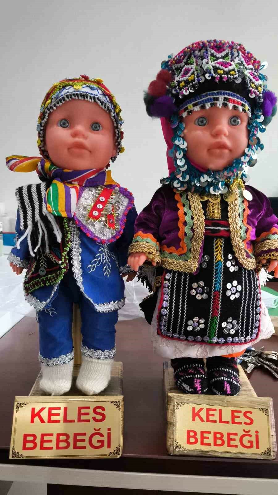 Keles Kaymakamlığı bünyesindeki Aile Destek Merkezi’nde tamamen el işçiliğiyle üretilen Keles bebekleri, uygun fiyatlarla satışa sunuluyor. Erkek ve kadın figürleri bulunan bebekler, üç farklı boyutta hazırlanırken, yöreye özgü kıyafetlerin minyatür birebir örnekleriyle dikkat çekiyor. Kıyafetlerin, geçmişte Keles yöresinde kullanılan geleneksel giysilerin aynı iplik ve süslemelerle hazırlanması ise kültürel değeri ön plana çıkarıyor.