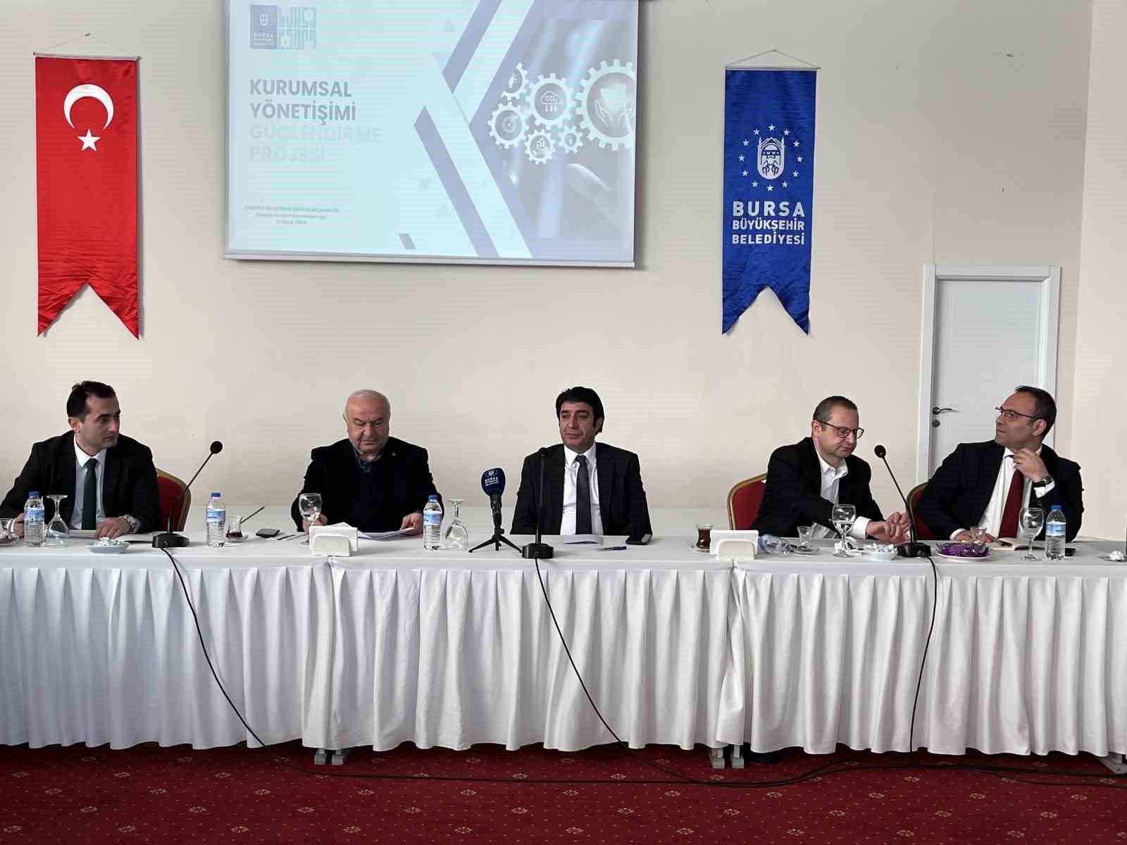 Bursa Büyükşehir Belediyesi tarafından şehirde güçlü bir sinerji oluşturmak amacıyla organize edilen ‘Kurumsal Yönetimi Güçlendirme Toplantısı’, 30’a yakın kamu kurumu ve sivil toplum kuruluşu temsilcisinin katılımıyla Atatürk Kongre Kültür Merkezi’nde yapıldı.