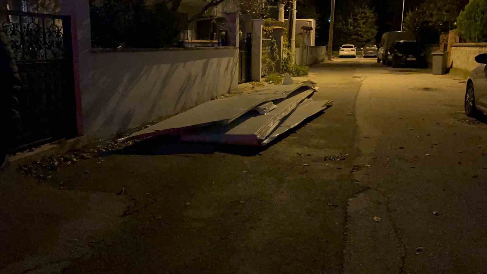Olay, Mahmudiye Mahallesi 1. Kaya Sokak üzerinde meydana geldi. Gece saatlerinde mahalle sakinleri, gürültüyle uyandı. Dışarıya çıkan vatandaşlar sokak üzerinde çatı parçaları buldular. Vatandaşların haber vermesi üzerine olay yerine polis ve İtfaiye ekipleri sevk edildi. Ekipler çevredeki binaların çatılarını tek tek inceledi. Çatının düştüğü sokağın arka tarafındaki Lider sokakta inceleme yapan ekipler, hasarlı binayı buldular. Yaklaşık 100 metre uçarak diğer sokak üzerine düşen çatı parçalarını gören vatandaşlar hayretler içerisinde kaldı. Uçan çatı parçaları, bir binaya çarparak hasar oluşturdu. Çatısı uçan dubleks daire sahibine haber verildi. Uçan çatı, ekipler tarafından yoldan kaldırıldı.