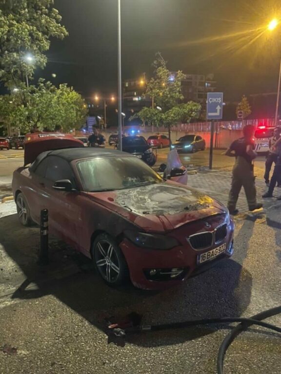 Bursa’nın Nilüfer ilçesinde bir eğlence merkezinin açık otoparkında park halindeki lüks otomobil alev alev yandı. İtfaiye ekiplerince yangın söndürülürken, olayla ilgili tahkikat başlatıldı.