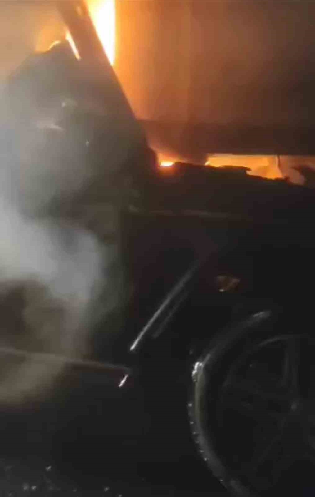 O sırada cip alev alırken, vatandaşlar sürücü Y.F.E.’yi zor da olsa sıkıştığı yerden kurtardı. İhbar üzerine bölgeye gelen sağlık ekipleri yaralı sürücüyü ilk müdahalesinin ardından Şehir Hastanesi’ne kaldırırken, itfaiye ekipleri de yanan araca müdahale ederek söndürdü. O anlar, sürücünün yardımına giden bir vatandaşın cep telefonu kamerasına yansıdı.