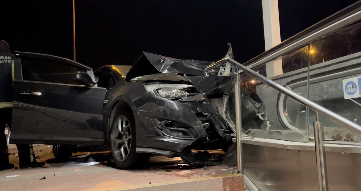 Bursa’da bir otomobilin makas atarken kontrolden çıkıp önce önündeki araca ardından metro istasyonu merdivenlerine çarpması sonucu 4 kişi yaralandı.