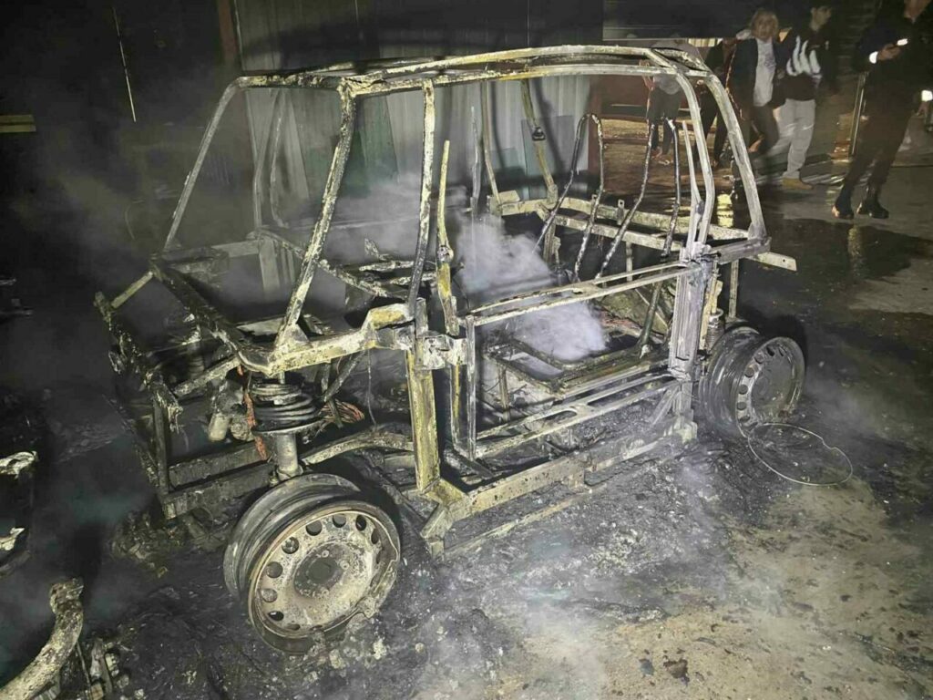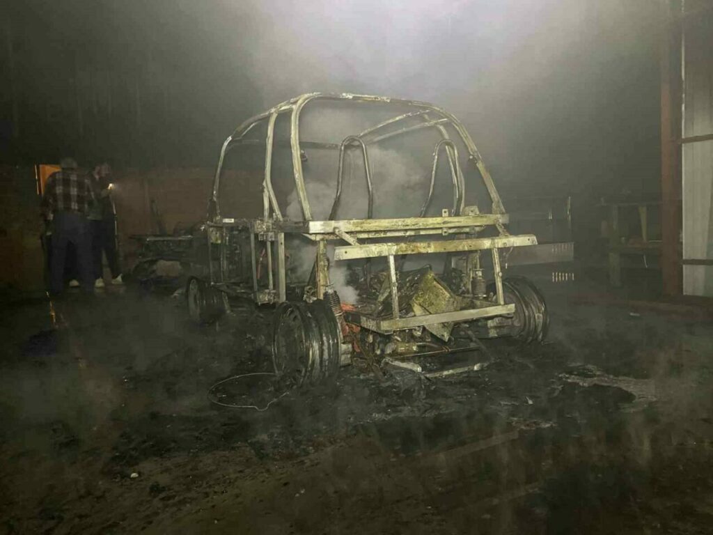 Edinilen bilgilere göre olay, saat 23.45 sıralarında meydana geldi. Atölye içerisinde bulunan elektrikli araç ve benzinle çalışan ATV motoru, henüz bilinmeyen bir nedenle alev aldı. Elektrikli araçtaki lityum bataryanın etkisiyle alevler kısa sürede yükselirken, benzinli ATV motorunda meydana gelen patlama çevrede paniğe neden oldu.