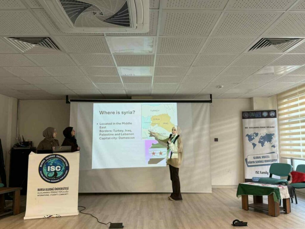 Bursa Uludağ Üniversitesi (BUÜ) Uluslararası Öğrenci Topluluğu tarafından yürütülen “Global Voices: Dünya Seninle Konuşuyor” etkinliği kapsamında, Osmangazi ilçesindeki Demirtaşpaşa Mesleki ve Teknik Anadolu Lisesi’nde kültürlerarası bir buluşma gerçekleştirildi.
