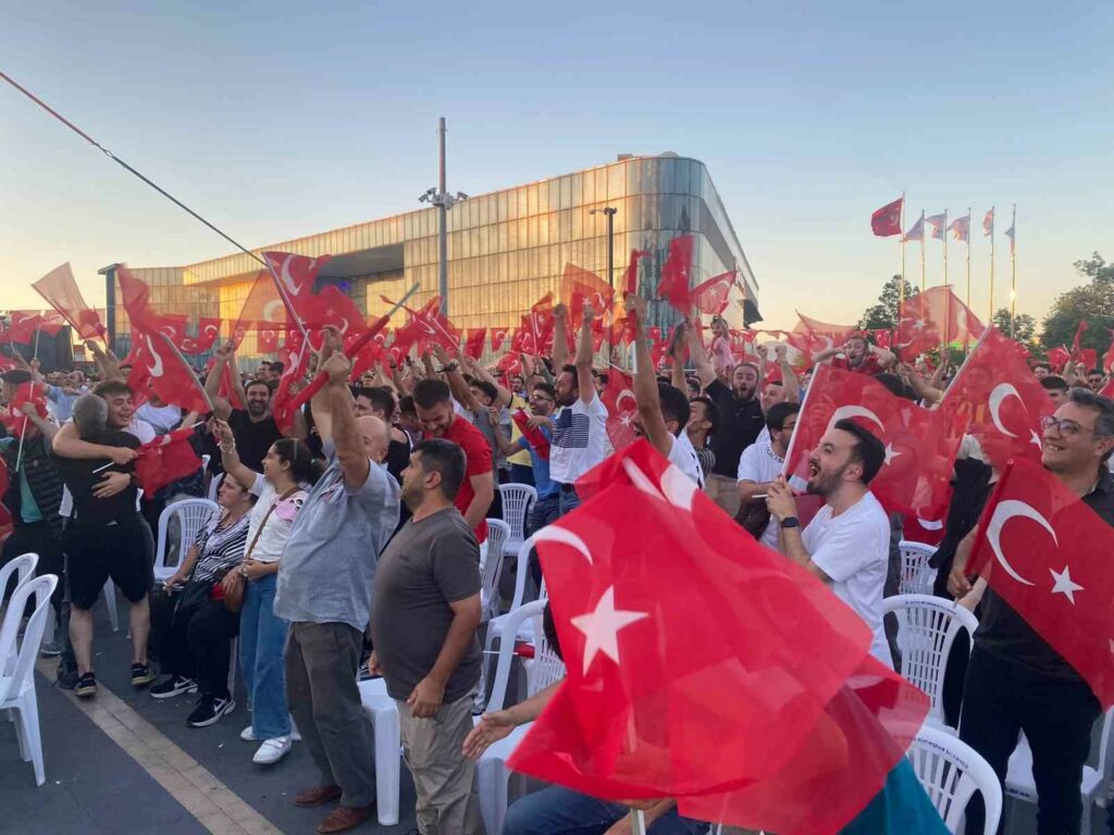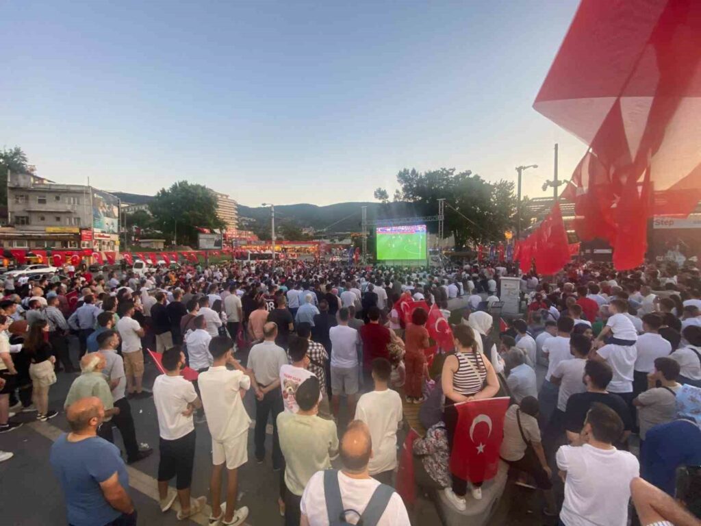 Bursa Büyükşehir Belediyesi, A Milli Futbol Takımı’nın EURO 2024 Avrupa Şampiyonası’ndaki maçlarını Bursalıların bir arada büyük bir coşkuyla izleyebilmesi için Kent Meydanı’nda dev ekran kurdu. Maç öncesi alanı dolduran vatandaşlar, ellerindeki Türk bayraklarıyla Kent Meydanı’nı adeta stadyuma çevirdi. Millilerin Avrupa Şampiyonası’ndaki ilk maçı olan Gürcistan maçını heyecan içerisinde izleyen vatandaşlar, 90 dakika sonunda alınan galibiyetle büyük sevinç yaşadı.