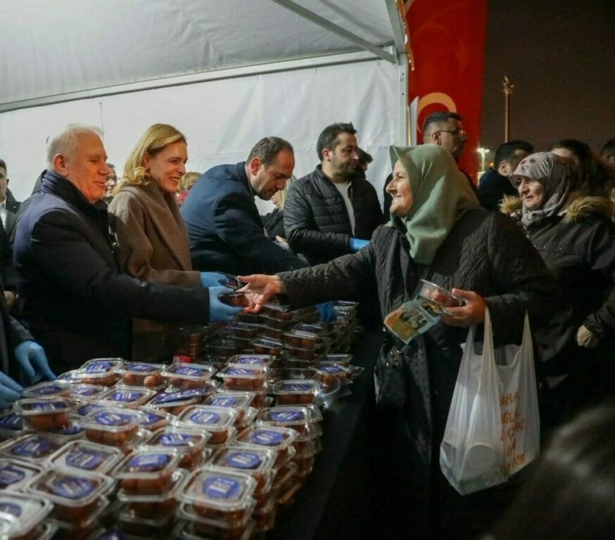 Bursa Büyükşehir Belediyesi, kent genelindeki 21 farklı camide Miraç Kandili dolayısıyla vatandaşlara tatlı ikram ederken, Bursa Büyükşehir Belediye Başkanı Mustafa Bozbey de eşi Seden Bozbey ile birlikte Emirsultan Cami’nde Bursalılarla bir araya geldi.