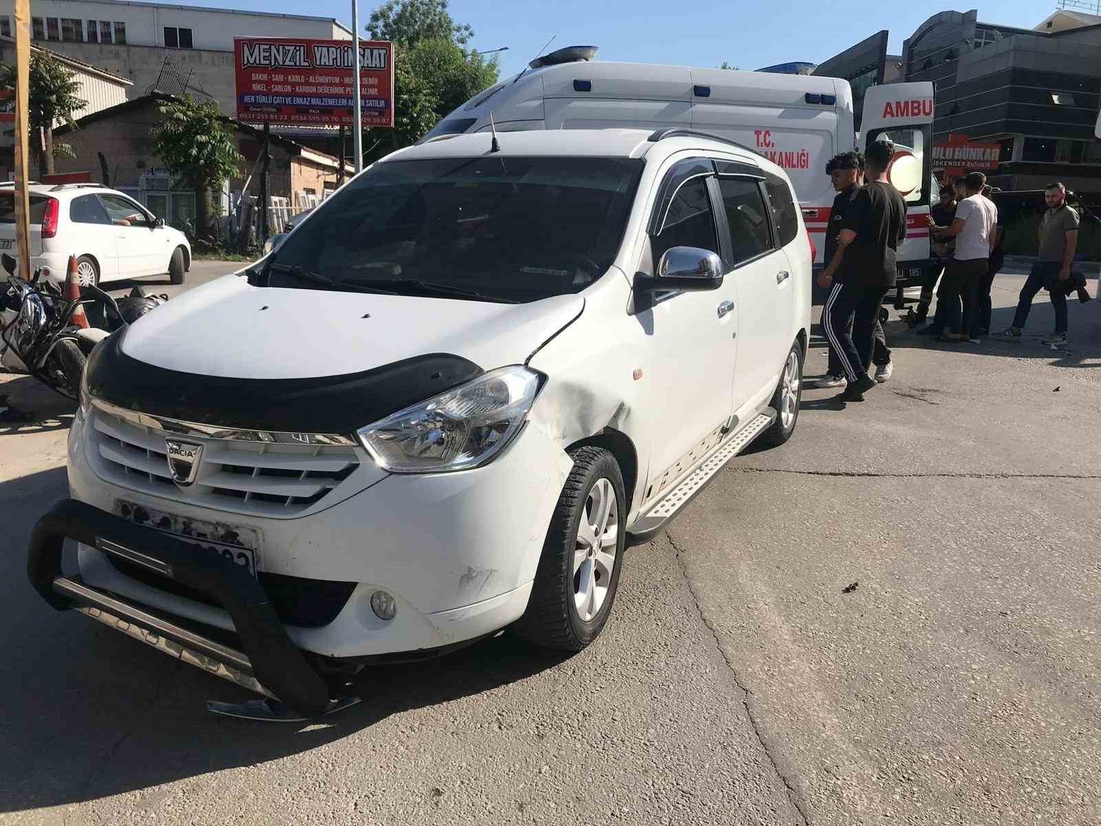 Kaza, merkez Osmangazi ilçesi Küçükbalıklı Mahallesi’nde meydana geldi. Motosikletiyle seyir halindeki bir sürücü ara sokaktan aniden çıkan otomobilin çarpması ile savruldu. Metrelerce sürüklenen sürücü yaralanırken, çevredekiler hemen yardıma koştu. İhbar üzerine bölgeye 112 ekipleri sevk edildi. Olay yerinde ilk müdahalesi yapılan motosikletli ambulans ile Çekirge Devlet Hastanesine sevk edildi.