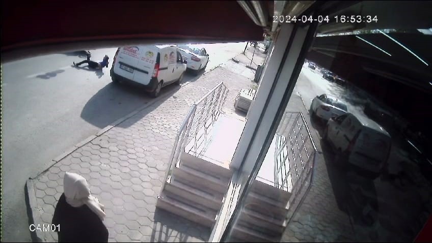 BURSA’NIN İNEGÖL İLÇESİ HAMİDİYE MAHALLESİ’NDE MEYDANA GELEN KAZADA MOTOSİKLET YAYAYA ÇARPTI; 2’Sİ ÇOCUK 3 KİŞİ YARALANDI. KAZA ANI BİR İŞYERİNİN GÜVENLİK KAMERASINA SANİYE SANİYE YANSIDI.