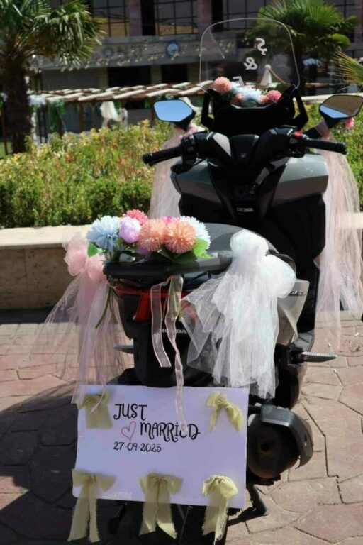 Nikâhın ardından motosikletlerini çiçek ve tüllerle süsleyen çift, düğün konvoyuna ilginç bir renk kattı. Gelinlik yerine beyaz takım tercih eden Şule Albayrak Çağın ve damat Emre Çağın, süslenmiş motosikletleriyle şehir turuna çıktı. Renkli görüntülere sahne olan anlarda çevredeki vatandaşlar çifti alkışlayarak mutluluklarına ortak oldu.