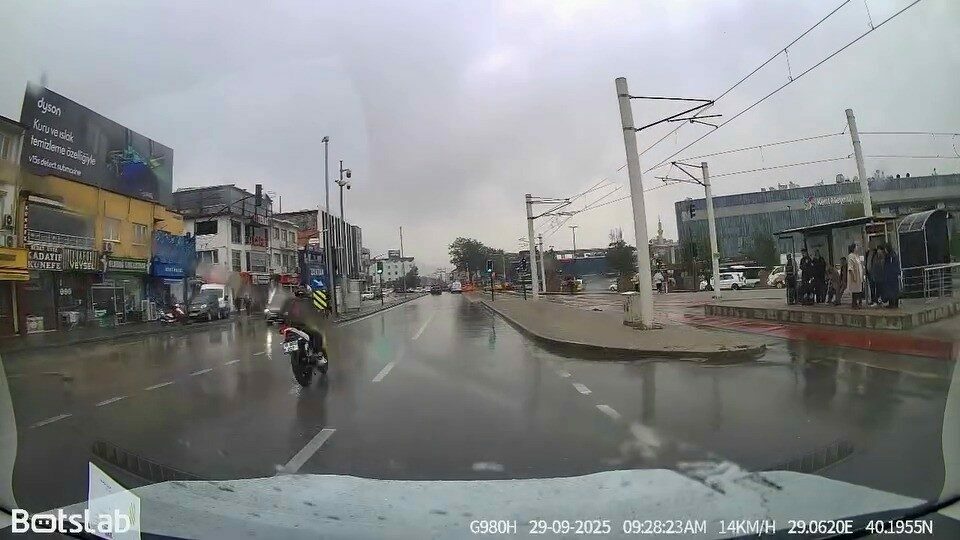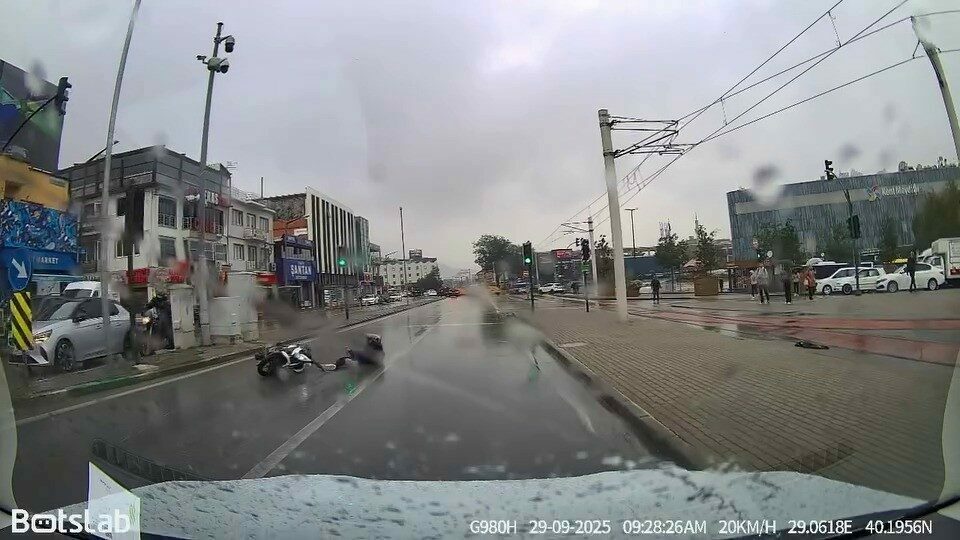 Bursa’da yağışlı havada yolların kayganlaşmasını fırsat bilen bir motosiklet sürücüsü, cadde ortasında drift atmaya kalkınca yere kapaklandı. O anlar kameraya anbean yansıdı.