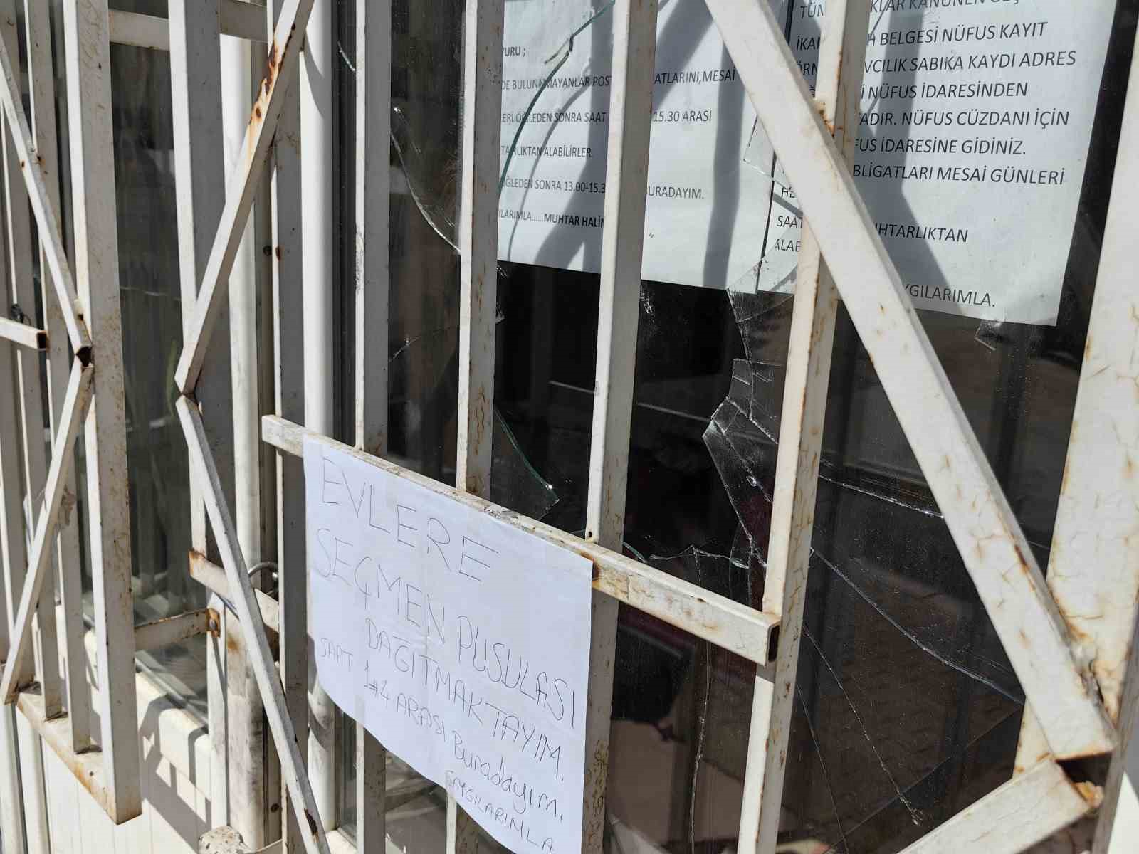 Sabah muhtarlık binasına gelen muhtar Halim Yiğit, kapı camının kırıldığını gördü. Haber verilmesi üzerine olay yerine polis ekipleri sevk edildi. Ekipler şahısları yakalamak için çalışma başlattı.