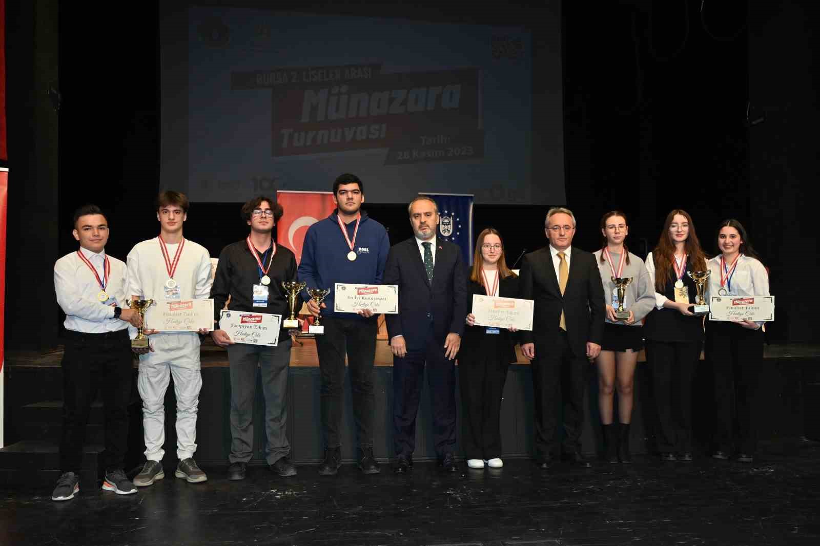 Bursa 2. Liseler Arası Münazara Turnuvası ön elemeleri Cumhuriyet’in 100. yılı etkinlikleri çerçevesinde 21-22 Ekim tarihlerinde 120 takım, 240 öğrencinin katılımıyla Bursa Kız Lisesi’nde gerçekleşmişti. Çeyrek ve yarı final karşılaşmalarından sonra finale kalan 4 takım, Tayyare Kültür Merkezi’nde şampiyonluk için ter döktü. Etkinliğe Büyükşehir Belediye Başkanı Alinur Aktaş, İl Milli Eğitim Müdürü Dr. Ahmet Alireisoğlu, okul yöneticileri ile çok sayıda öğretmen ve öğrenci katıldı.