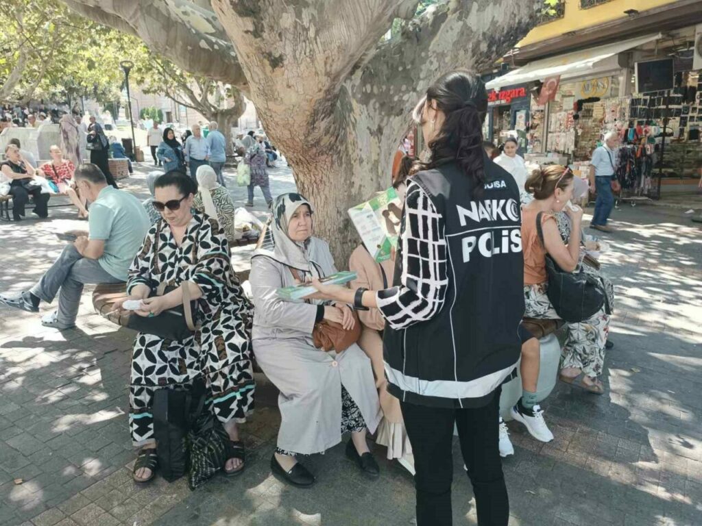 Bursa İl Emniyet Müdürlüğü Narkotik Suçlarla Mücadele Şube Müdürlüğünce eğitim, bilgilendirme ve farkındalık semineri gerçekleştirildi. Bursa Emniyet Müdürlüğü Narkotik Suçlarla Mücadele Şube Müdürlüğünce 14 Temmuz / 25 Temmuz 2025 tarihleri arasında uyuşturucu ile mücadele eğitimi, bilgilendirme ve farkındalık faaliyetleri kapsamında 31 ayrı etkinlikte 7 bin 663 kişiye ulaşılarak eğitim, bilgilendirme ve farkındalık faaliyetleri gerçekleştirildi.