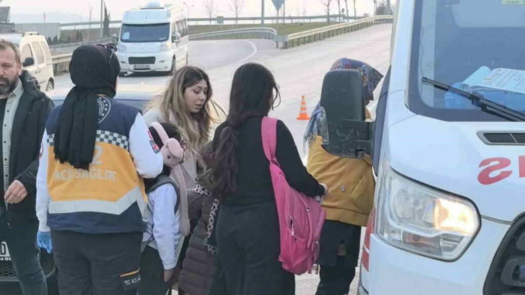 Bursa’nın İnegöl ilçesinde öğrenci servisi ile otomobilin çarpıştığı kazada 6’sı öğrenci 10 kişi yaralandı. Kaza anı bir iş yerinin güvenlik kamerasına saniye saniye yansıdı.