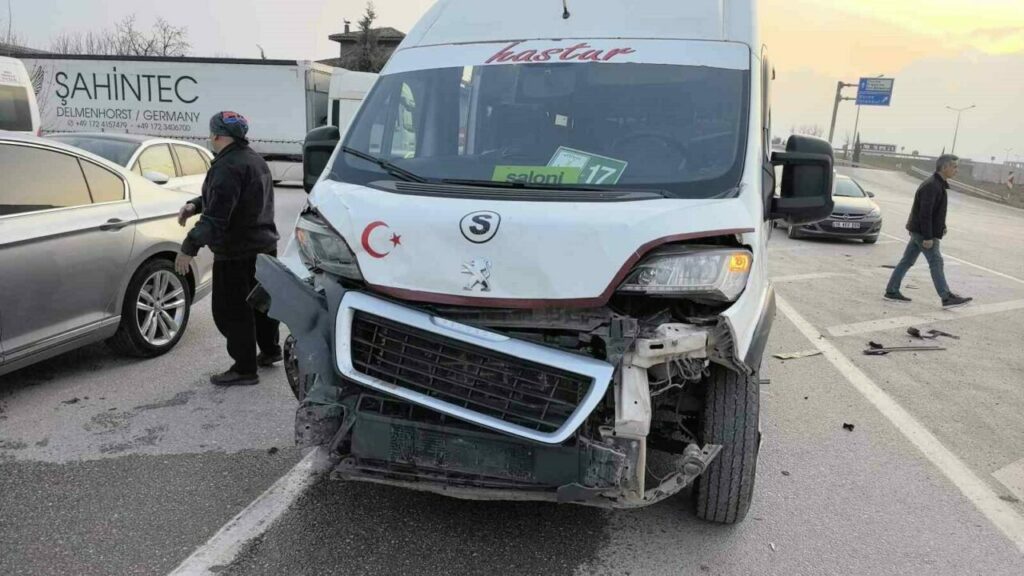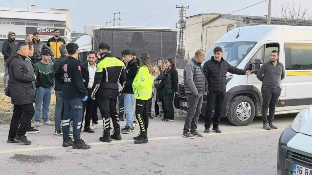 Kaza, saat 17.00 sıralarında Akhisar Mahallesi Karalar Yolu Caddesi’nde meydana geldi. Cerrah Mahallesi’ndeki özel bir ilk ve ortaokuldaki öğrencileri alan Ataman G. (56) idaresindeki Peugeot marka 16 S 7672 plakalı servis minibüsü, ’U’ dönüşü yapan Nazan T. (45) idaresindeki Audi marka 16 AGA 253 plakalı otomobile yandan çarptı. Çarpmanın etkisiyle araçlar savruldu. Kazada her iki aracın sürücüleri ile servis minibüsündeki öğrenciler Elif Su T. (10), Mehmet Yusuf A. (12), Nilhan A. (7), Mehmethan G. (8), Zehra A. (8), Elif K. (7), Semih T. (30) ile rehber öğretmen Gizem A. (24) yaralandı. Kaza yerine itfaiye, sağlık ve polis ekipleri sevk edildi. Yaralılar kaza yerine sevk edilen ambulanslarla İnegöl Devlet Hastanesine kaldırıldı.