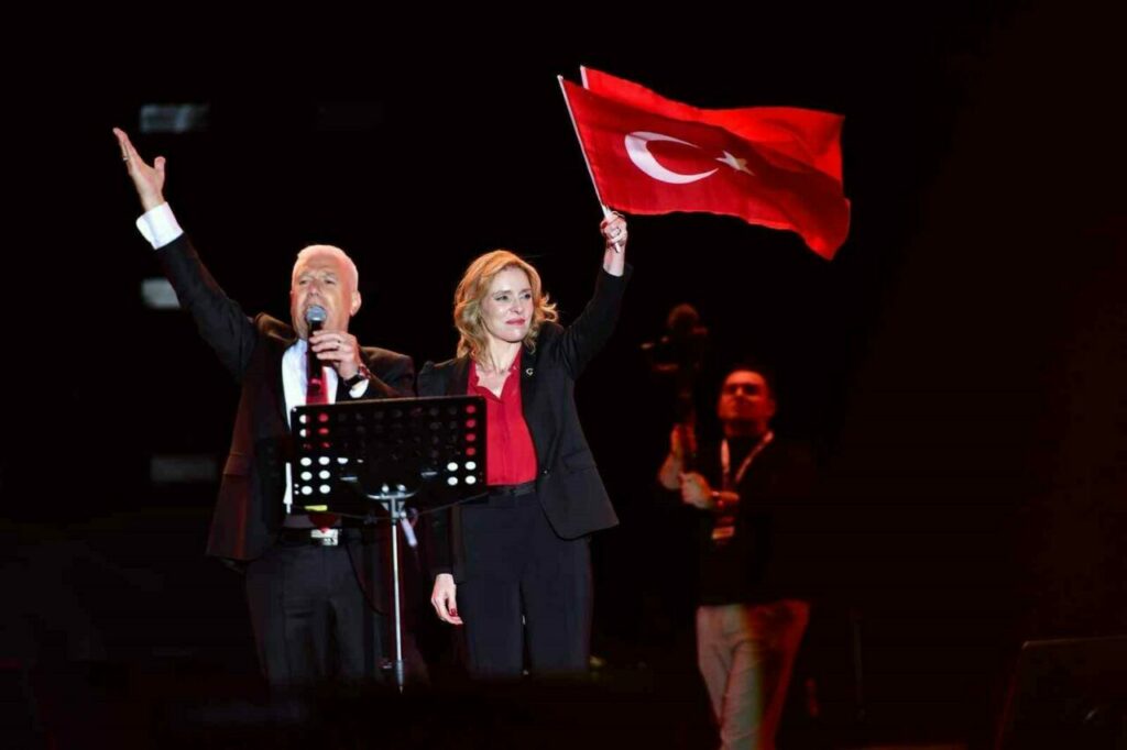 Bursa Büyükşehir Belediyesi ve Nilüfer Belediyesi’nin birlikte düzenlediği Cumhuriyet Bayramı kutlamalarının finalinde, sevilen sanatçı Edis sahne aldı. Ünlü sanatçının sahneye çıkmasıyla coşku doruğa çıktı. Edis’in muhteşem sahne performansı, bayram coşkusu yaşayanlara keyifli anlar yaşattı. Bursalıların birçok parçasına eşlik ettiği Edis’e, gecenin sonunda Bursa Büyükşehir Belediye Başkanı Mustafa Bozbey ve Nilüfer Belediye Başkanı Şadi Özdemir, çiçek vererek teşekkür etti.