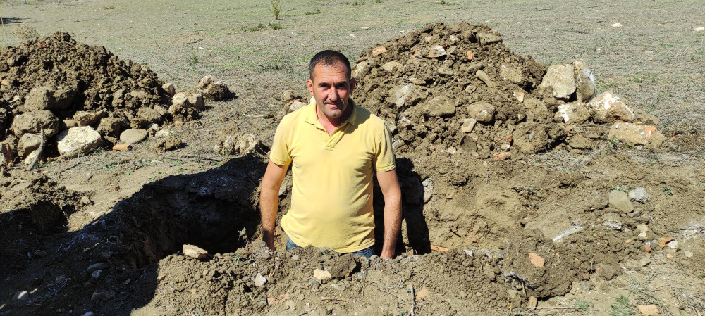 “Burada dinamit patlatılacak, mezarlar zarar görecek. Biz de mezarlığı taşımaya karar verdik. Yeni mezar yeri oluşturduk. Mezarlığımız taşınmaya başladı. Toplamda 180 tane mezar var. Buradan çıkan kemikler yeni mezarlığa taşınacak.”