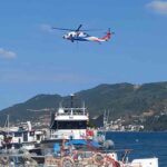 Mudanya sahilinden su alan helikopter, vatandaşlar tarafından da görüntülendi.