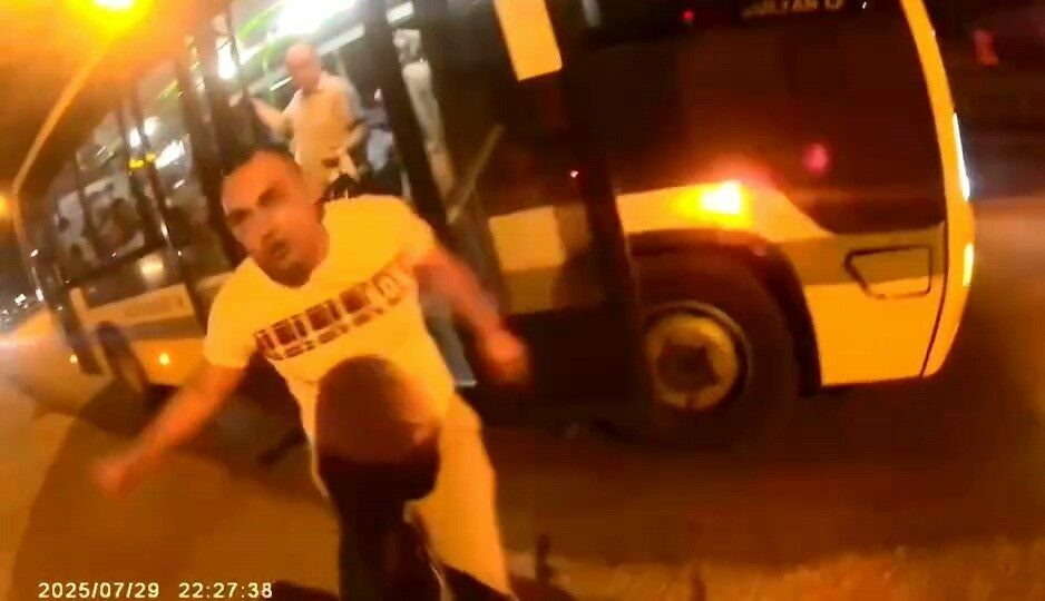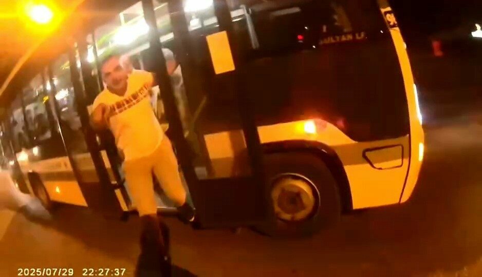 Bursa’nın İnegöl ilçesinde sollama yapan bir motosiklet sürücüsü, özel halk otobüsü şoförü tarafından sıkıştırıldı. Ardından aracı yol kenarına çekip inen otobüs şoförü, motosikletlinin üzerine yürüyerek tartışma çıkardı. O anlar motosikletlinin kask kamerası tarafından saniye saniye kaydedildi.