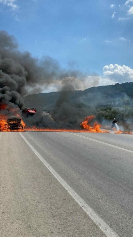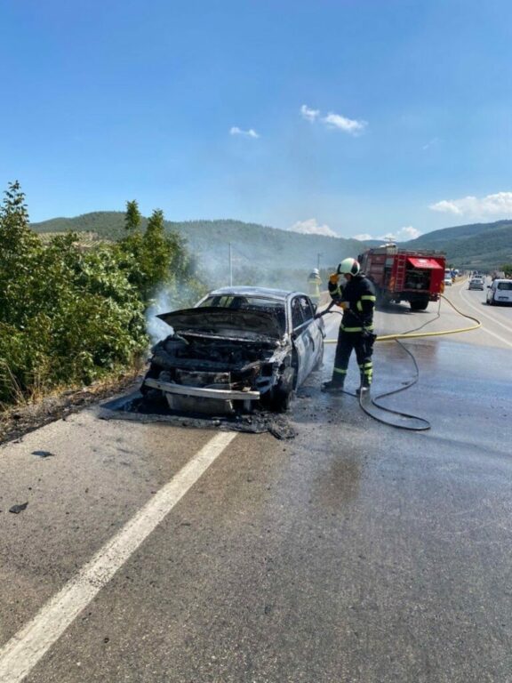 Bursa’nın İznik ilçesinde bir otomobil, yolun ortasında cayır cayır yandı. O anlar saniye saniye amatör kamera ile kaydedildi.