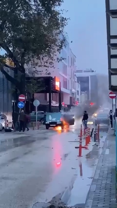 Bursa’da seyir halindeki otomobilinden çıkan dumanları gören sürücü aracını sağa çekti. Otomobil, bir süre sonra alev topuna döndü. O anlar amatör kameralara yansıdı.