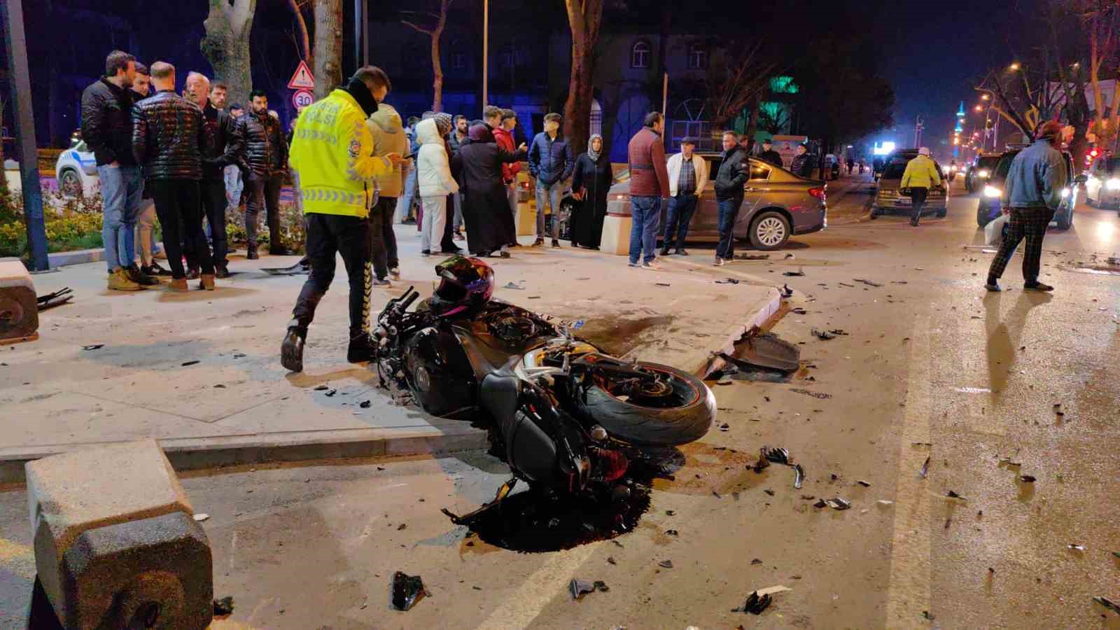 Kaza saat 22.30 sıralarında Kemalpaşa mahallesi Adnan Menderes Bulvarı üzerinde meydana geldi. Cadde üzerinde seyir halinde olan sürücü Yusuf K.(23) yönetimindeki 10 CFJ 04 plakalı motosiklet, cadde üzerinden manevra yaparak dönüş yapan sürücü Tasin K.(53) yönetimindeki 16 AYT 453 plakalı otomobil ile çarpıştı. Çarpışmanın etkisiyle kaldırıma da çarpan motosiklet sürücüsü ve arkasındaki arkadaşı Kerman T.(24) havalanarak 30 metre sürüklendi.
