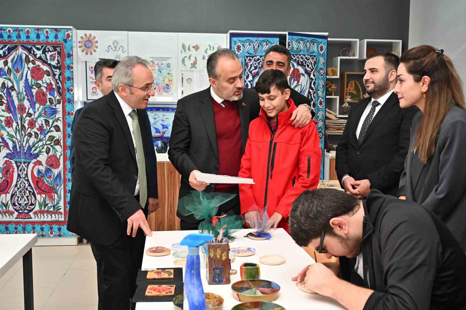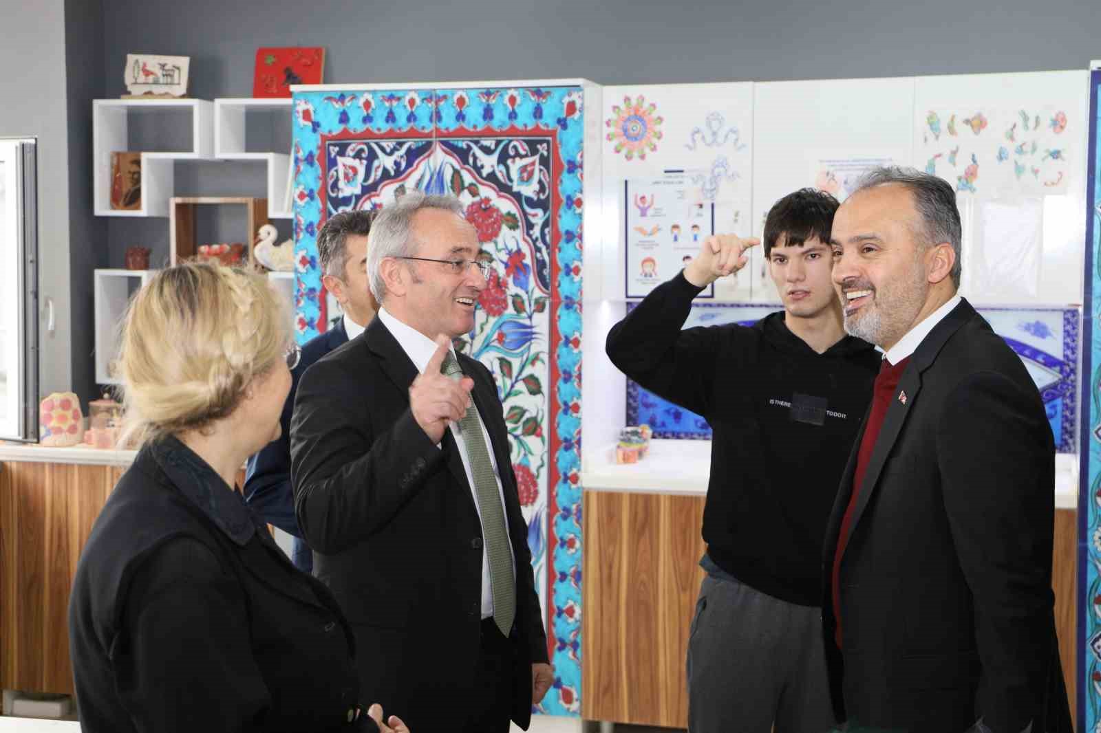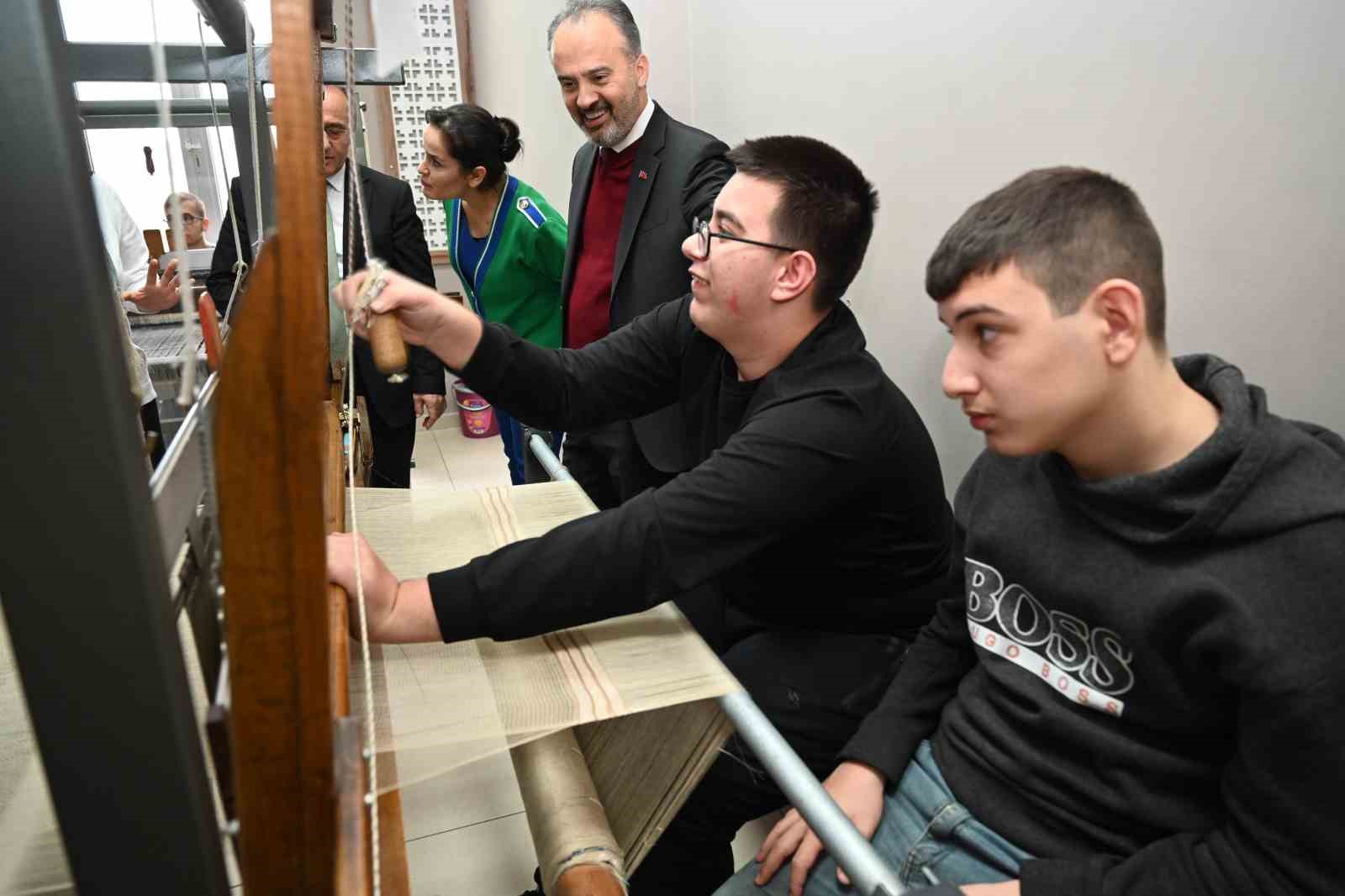 Bursa Büyükşehir Belediye Başkanı Alinur Aktaş, Mehmet Torun Aziz Torun Özel Eğitim Uygulama Okulu’nda eğitim gören özel öğrencilerle bir araya geldi. Okulun dokuma, el sanatları ve seramik atölyelerini gezen Başkan Aktaş, üretimde yeteneklerini gösteren özel öğrencilerle sohbet etti.