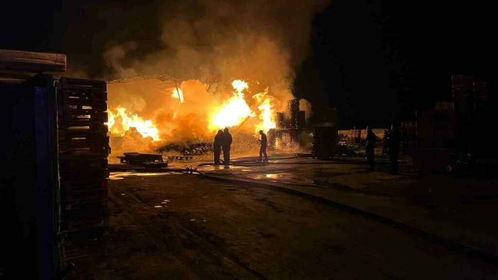 Bursa’nın Nilüfer ilçesinde faaliyet gösteren bir palet fabrikasında henüz bilinmeyen bir sebepten dolayı yangın çıktı. Yangın geceyi aydınlatırken, itfaiye ekiplerinin müdahalesiyle ormanlık alana sıçramadan söndürüldü.