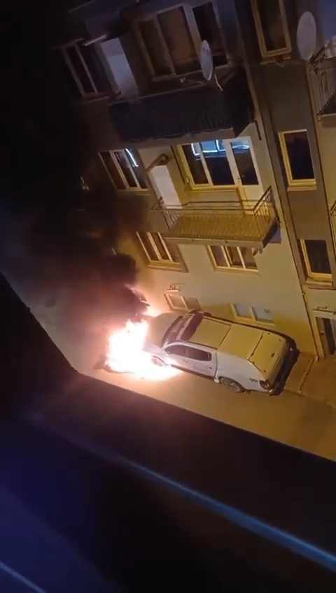 İddiaya göre sokak üzerinde park halindeki otomobil bir anda alev aldı.