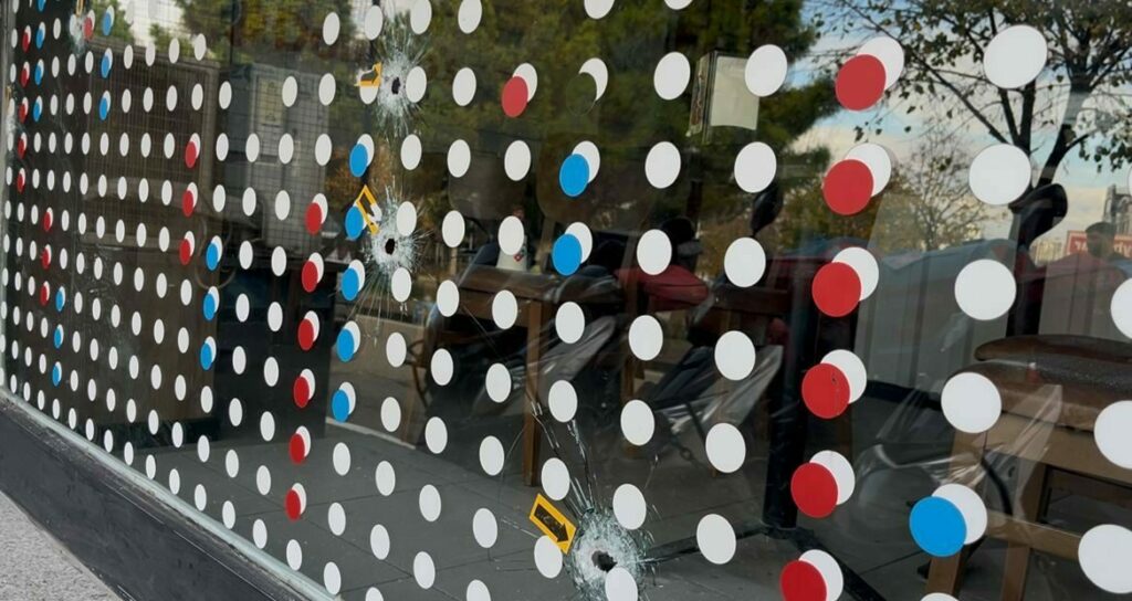 Bursa’nın Nilüfer ilçesinde motosikletli şahıs, bir pizzacıya kurşun yağdırdı. Kurşunların isabet ettiği dükkanda şans eseri kimse yaralanmadı.