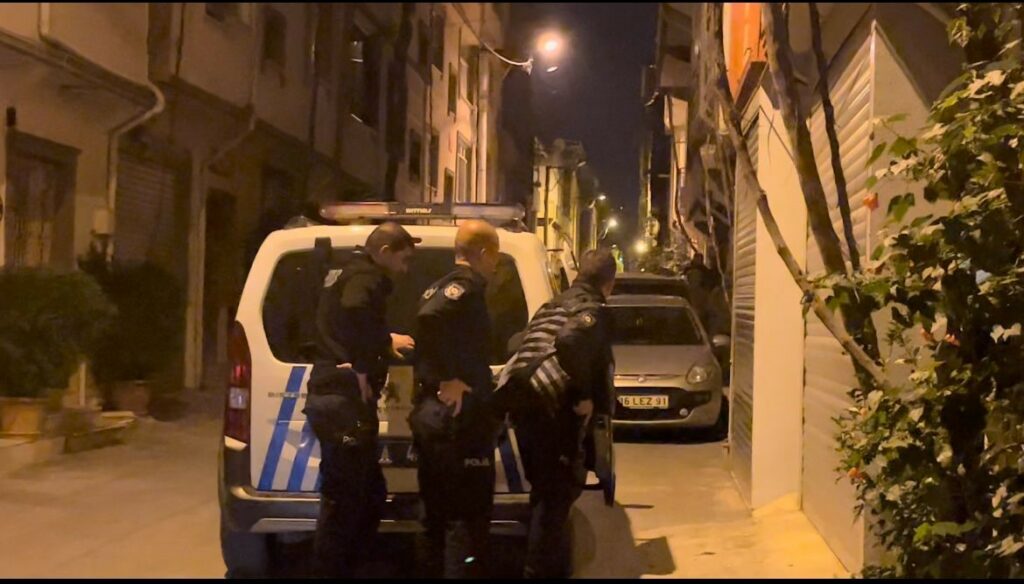 Bursa’nın merkez Yıldırım ilçesi Kazım Karabekir Mahallesi’nde gece saatlerinde son ses şarkı açarak mahalleyi ayağa kaldıran İsmet Kahraman kapıya gelen komşularını dinlemedi. Müziği bir türlü susturamayan mahalleli polis ekiplerini aradı. İhbar üzerine kapıya gelen polis, 5. katta oturan Kahraman’ın kendilerine silah çektiğini görünce hemen siper aldı. Polisi kapıya yaklaştırmayan Kahraman, tüm uyarılara rağmen silahını bir türlü bırakmadı İçeri giremeyen ekipler, Özel Harekat Ekiplerinden destek istedi. Olay yerine gelen özel harekat ekipleri koçbaşıyla kırdıkları kapıdan içeri girerek saldırganı gözaltına aldı. İşlemleri yapılmak üzere emniyete götürülen şüpheli basın mensuplarını görünce “Allah’ın rahmeti üzerinize olsun” dedi. Gözaltına alınan şüphelinin mahalleyi kırmızı alarma geçirdiği anlar ise kameraya anbean yansıdı.
