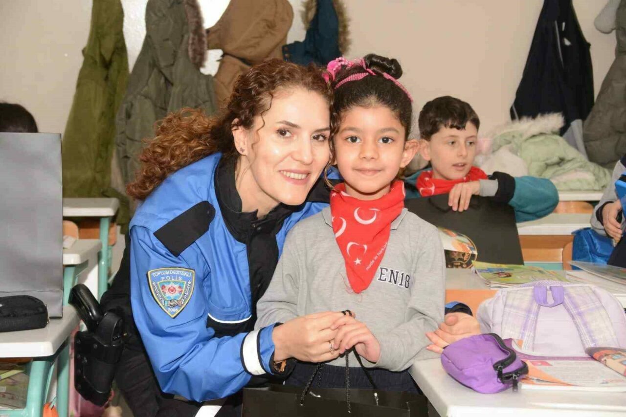 Erhan Nasyalçın İlköğretim Okulu 1/F sınıfı öğrencilerinin Emniyet Teşkilatı’na yazdığı mektup üzerine, Bursa Emniyet Müdürlüğü Toplum Destekli Polislik Şube Müdürlüğü ekipleri okulu ziyaret etti.