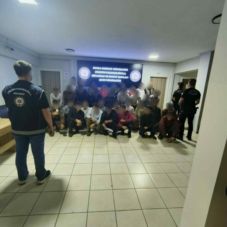 Bursa’da ruhsatsız bir iş yerinde çalışma izni bulunmayan 33 yabancı uyruklu şahıs yakalandı, iş yeri sahibi gözaltına alındı. Bursa Emniyet Müdürlüğü Göçmen Kaçakçılığıyla Mücadele ve Hudut Kapıları Şube Müdürlüğü ekipleri, göçmen kaçakçılığı suçunun önlenmesine yönelik yürüttüğü çalışmalar kapsamında Gemlik-Orhangazi yolu üzerindeki ruhsatsız bir iş yerinde yabancı uyruklu şahısların çalıştırıldığını tespit etti. 26 Eylül Cuma günü […]
