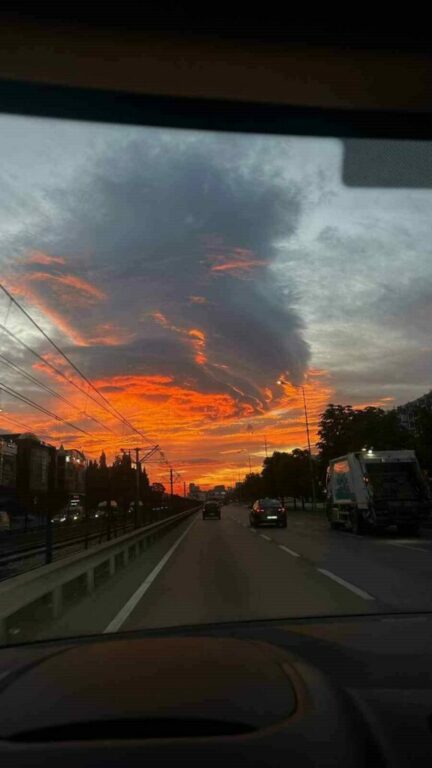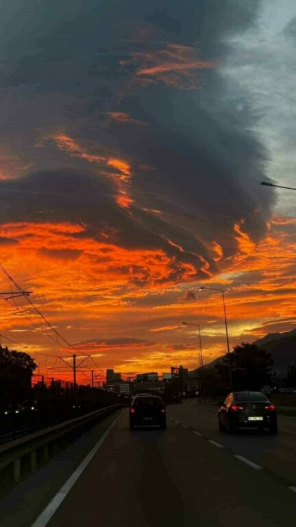Bursa’da sabah saatlerinde gökyüzünde beliren sıra dışı bulut oluşumu şehrin farklı noktalarından görüntülendi. Gün doğumuyla birlikte turuncu ve kırmızı tonlarına bürünen gökyüzü, adeta kartpostallık manzaralar ortaya çıkardı.